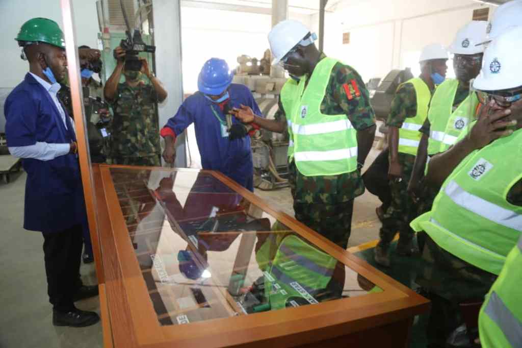 General Buratai was conducted round the newly rejuvenated factories and some production lines where he inspected some products and materials produced by DICON. He opined that with the level of progress of work and the zealousness of DICON Staff, soon Nigeria will start production of helicopters and jet fighters.